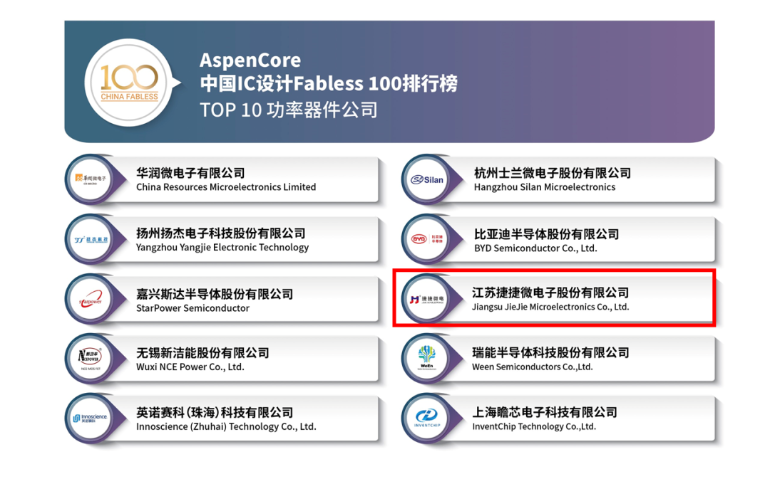 由全球歷史最久的科技界線上線下多媒體 Aspencore 分析師團(tuán)隊根據(jù)量化數(shù)學(xué)模型、企業(yè)公開信息、廠商調(diào)查問卷,以及一手訪談資料,精心篩選出中國IC設(shè)計行業(yè)100家綜合實力和增長潛力最強(qiáng)的公司。這100家公司分為10大類別,每個類別評選出Top 10。捷捷微電 榮登“2023 中國IC設(shè)計 Fabless 100 排行榜之 Top 10 功率器件公司”!